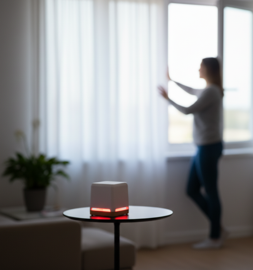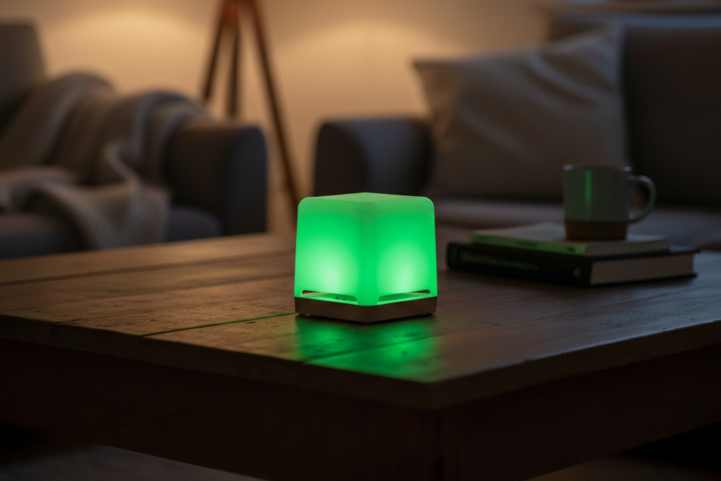 Grazie ai suoi sensori integrati rileva in tempo reale CO₂, temperatura, umidità e composti organici volatili (VOC), trasformando la qualità dell’aria in un linguaggio semplice e immediato: la luce.